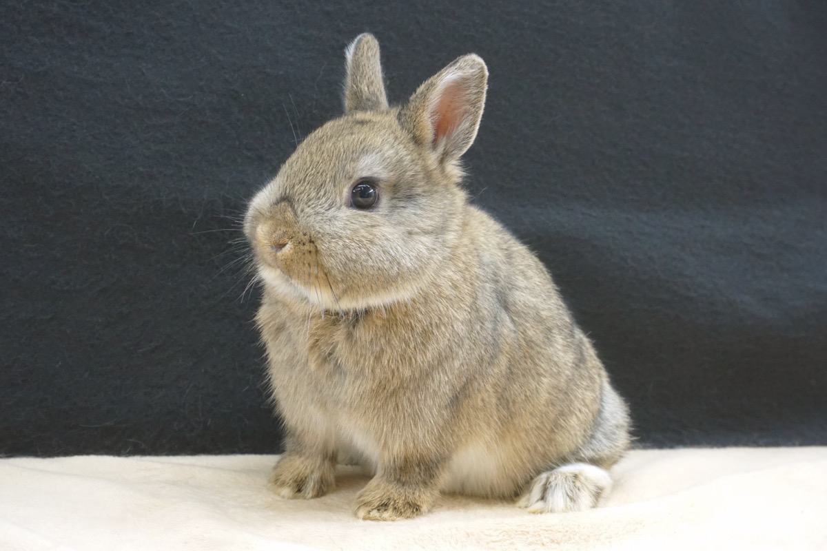 毛色は、茶色を基調に黒い差し毛が入ったピーターラビットの色合いで、毛1本1本がグラデーションになっていて息を吹きかけるとリングができる毛色です。